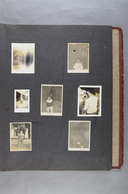 一孩童全身照,照片中疑似蘇淑真兩手抓著衣服看向鏡頭。蘇淑真背後有一名大人略彎腰、手撐扶大腿背對著鏡頭,但無法辨別是誰。
