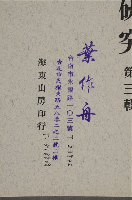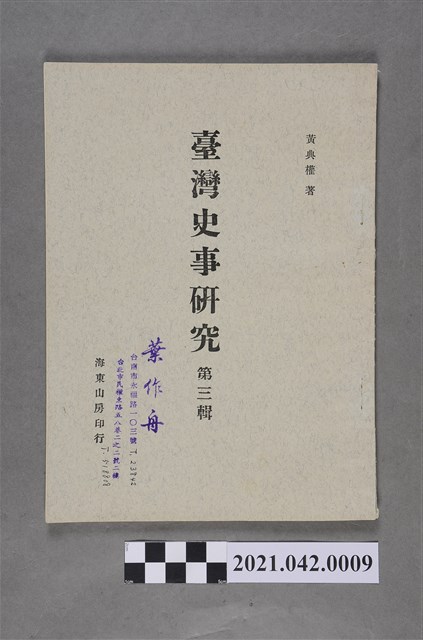 2021.042.0009 黃典權《臺灣史事研究》第三輯抽印本