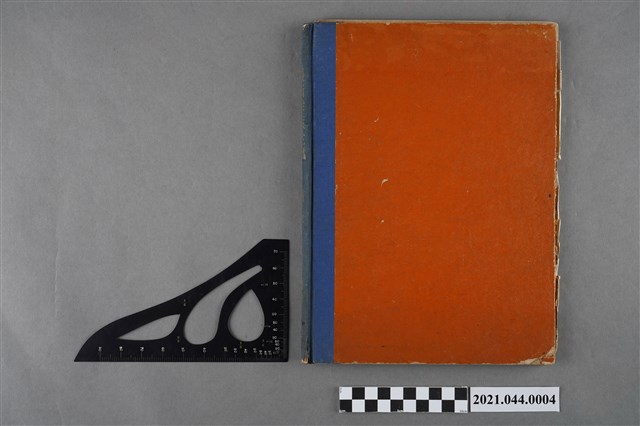 本件為捐贈者母親廖甜女士學習洋裁的筆記本,筆記本封面印有「續版 最新洋裁全書 日本東京洋裁技師 陳禮樂編著」等字,字下方有一盤髮女子教授洋裁打版圖繪。內頁為空白紙,其上有廖甜女士手繪的各式服裝打版布塊的圖繪與量測記錄,包括香港衫、嬰兒服、男襯衫、婦人簡便服等多種款式。另,內頁夾著一個黑色打版用的縮尺三角尺。