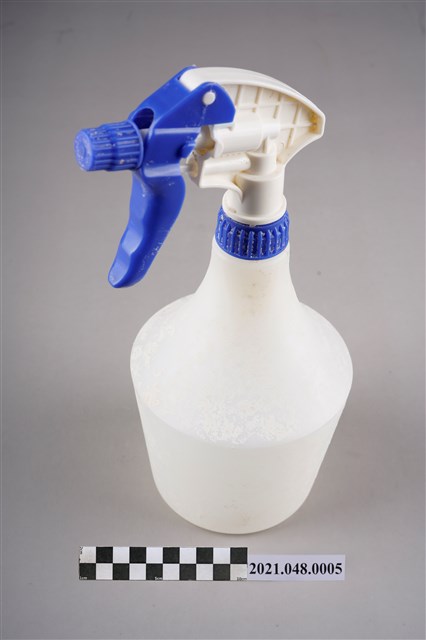 本件為白色塑膠瓶手壓式的噴霧器,瓶內可裝水,主要用來調整麵糰濕度。