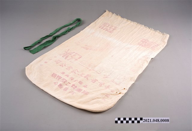 本件為沈家製麵店所剩下來的布麵粉袋,袋內呈裝有少量麵粉。麵粉袋表面印有紅色標示,但已斑駁難以辨識,隱約可見「臺灣省農工企業公司」字樣。