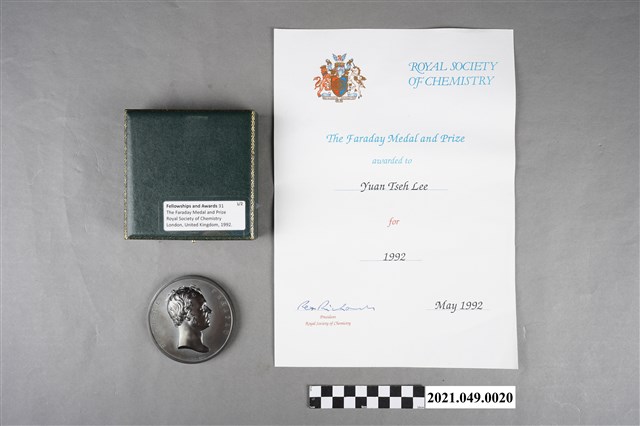 2021.049.0020 李遠哲1992年英國皇家學會-麥可·法拉第獎證書及獎章組