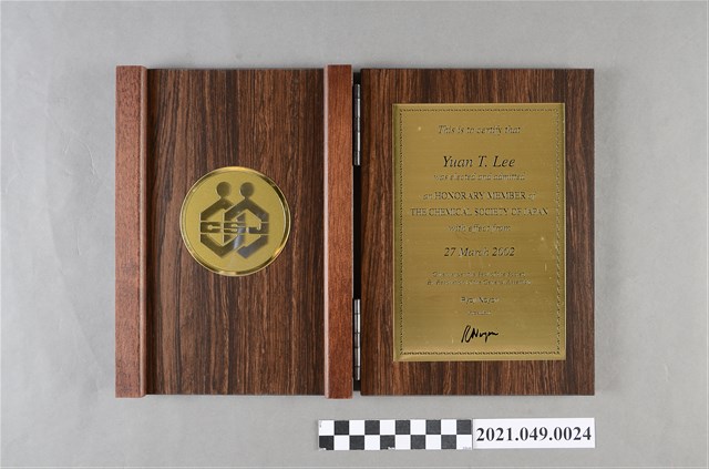 李遠哲2002年日本化學 學會名譽會員證書牌
