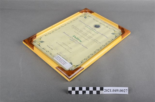 李遠哲2005年亞洲化學會聯合會研究員證書牌