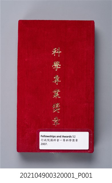 2021.049.0032 李遠哲2007年行政院國科會一等科學獎章及證書組