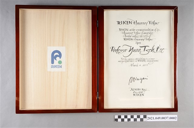 李遠哲2011年日本理化學研究所名譽研究員證書外盒