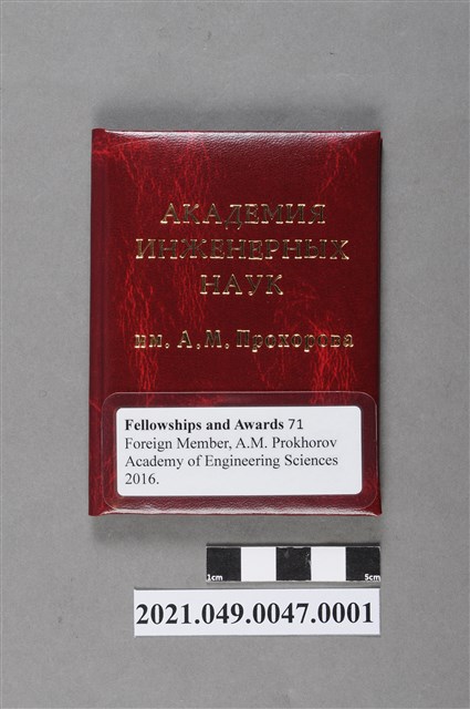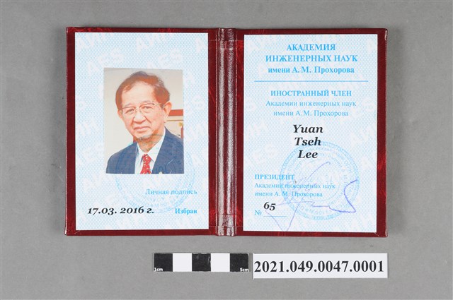 2021.049.0047 李遠哲2016年A.M. 普羅霍羅夫工程科學院外籍會員證書組