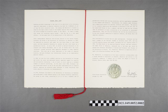 2021.049.0052.0002 李遠哲1986年加拿大滑鐵盧大學名譽博士證書2