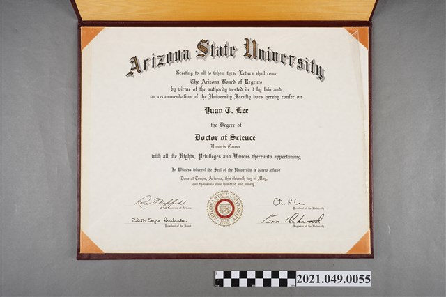 李遠哲1990年美國亞利桑那州立大學名譽博士證書
