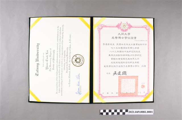 2021.049.0081.0001 李遠哲2007年大同大學名譽博士證書