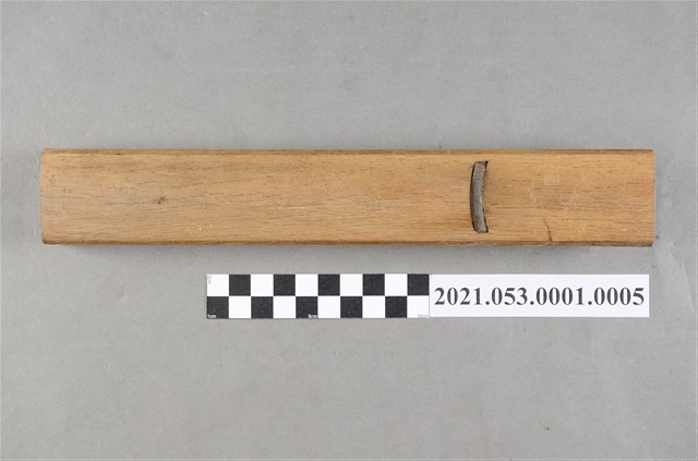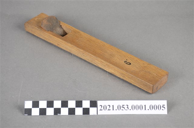 本件木型鉋,刀刃規格1寸,為製作木模模具專用鉋刀,採一枚刃、低角度、入嵌拉式做法。刀刃的刀頭上刻有「森本 登錄 佐」等字樣,可能為工具店名或鉋刃店名。 刀刃口寬度約為3公分(30mm),約為1(台)寸,鉋台底部採外圓做法,鉋身上方寫有「6"」黑字,可能為尺寸或工具編號標示,鉋尾刻有「たいたつ」字樣及蓋印「6」黑字。本鉋刀使用於高雄地區,據捐贈者訪談,使用者為林春榮(澎湖人,約1919、1920年生)先生的哥哥,任職於高雄的機械公司,從事木作模型的製作。
