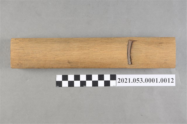 本件木型鉋,刀刃規格1寸2,為製作木模模具專用鉋刀,採一枚刃、低角度、入嵌拉式做法。刀刃的刀頭上刻有「森本 登錄 佐」等字樣,可能為工具店名或鉋刃店名。 刀刃口寬度約為3.7公分(37mm),約為1(台)寸4分,鉋台底部採外圓做法,鉋尾刻有「たいたつ」字樣。本鉋刀使用於高雄地區,據捐贈者訪談,使用者為林春榮(澎湖人,約1919、1920年生)先生的哥哥,任職於高雄的機械公司,從事木作模型的製作。