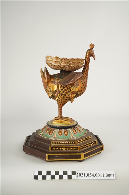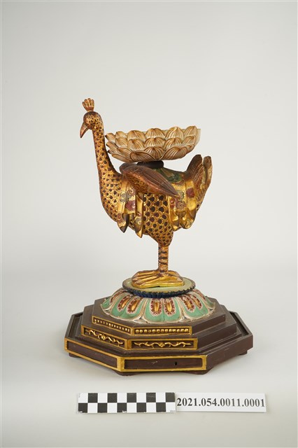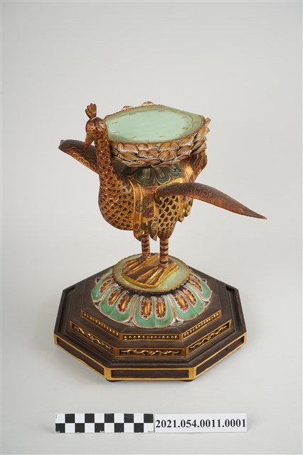 2021.054.0011.0001 木雕彩繪孔雀明王造像底座