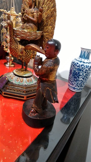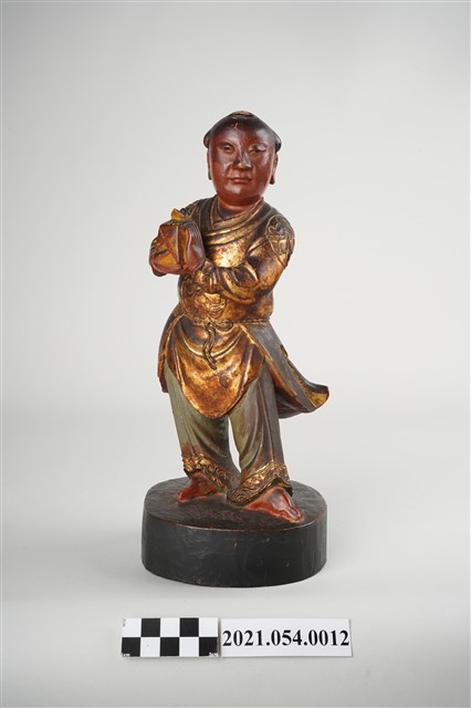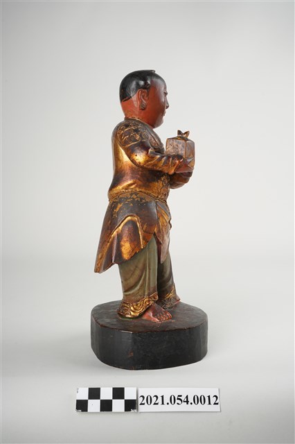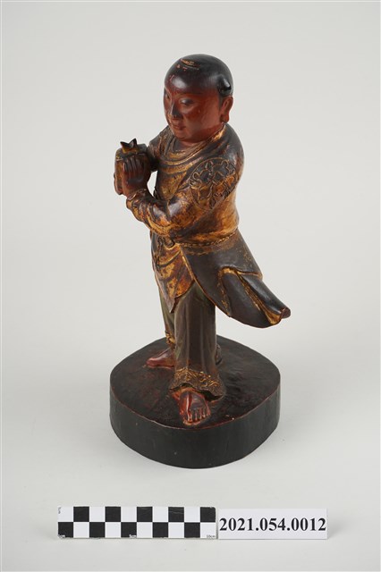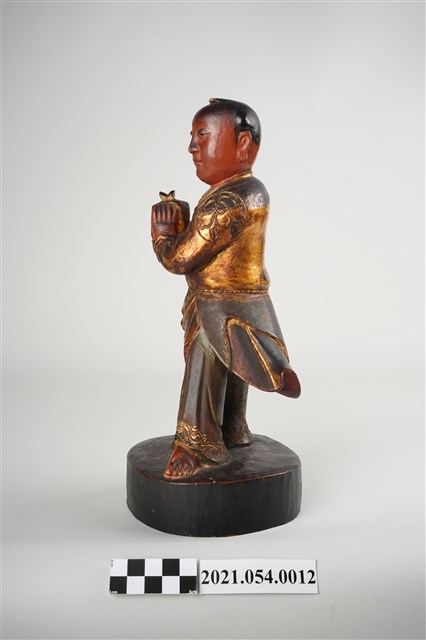 本件木雕漆線印童神像據捐贈者口述原有一對劍童、印童,係來自新竹市東寧宮,劍童不慎遺失後僅存印童供奉於家中案桌上。