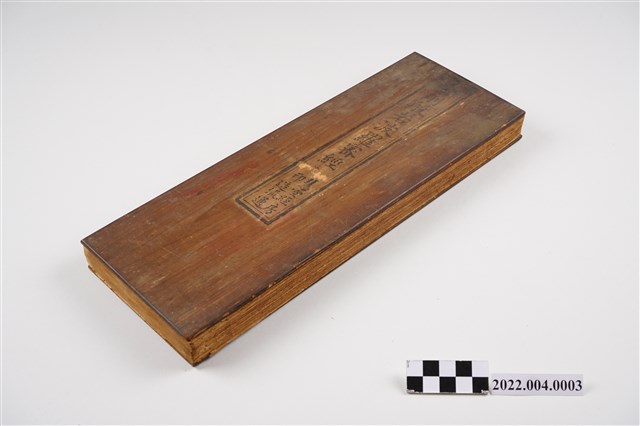 此份《金剛般若波羅密經》為經摺裝,前後加上木板書皮用以保護全書,題籤些微破損,可辨識部分寫有「金剛般若波羅密經 慧空經房印造流通」。內頁有卷首畫,無題但有武林錢武昭敬摹的落款,應為釋迦牟尼佛在祗樹給孤獨園為須菩提尊者宣說經典的內容,卷末有五頁金剛經寶塔圖,寶塔周佈108個圈,用以至誠誦念修持,填滿塔圈功德,以為發願祈念。內頁邊欄為單欄,板心位置有板次,經文黑字為主。不同於本館另一套金剛經藏本2017.028.0003臺南慎德堂《金剛般若波羅蜜經》藉「純陽呂僊師降筆」之意,認為讀金剛經不可不讀心經,並做為金剛經證誤。本藏板將心經置於卷首,啟經香讚,頌真言、請金剛、發願文後才是金剛經三十二品的內文,卷末並附錄金剛經感應,陳述以誦念金剛經的福報事蹟(延壽、愈疾、生子、登科、卻鬼、還陽),版本為杭省昭慶慧空經房藏板,皖南沈鍾瑞敬刻助印,刻板有一「大清光緒年月日弟子敬」落款留白頁面,當可作為年代定序參照。