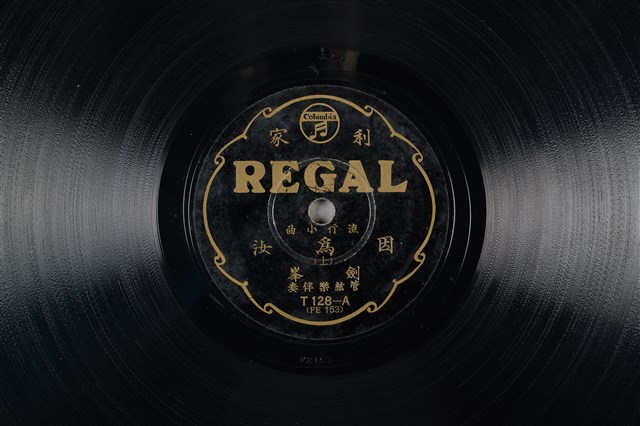古倫美亞(利家-黑)編號「T128」《流行小曲:因為汝(上)、因為汝(下)》10吋蟲膠唱片