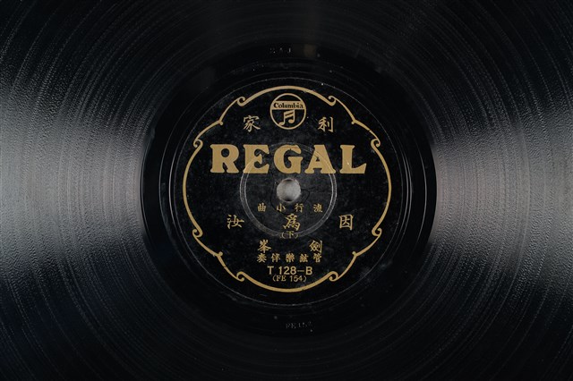 2022.005.0022 古倫美亞(利家-黑)編號「T128」《流行小曲:因為汝(上)、因為汝(下)》10吋蟲膠唱片