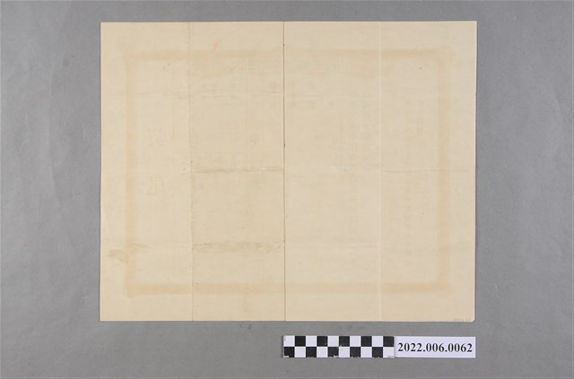 本文物為一張「契尾」,時間為明治32年(1899)2月17日;內容大意說明林賜寅、林賜國、林福對、林福進等人賣渡八里坌堡坑仔外社庄土地給陳合成後,所授與的官方證明文件。本文件依日本官方印製之表格填寫,上面載明契尾番號、日期、買賣者資料、價錢、稅金等,並印有臺北縣官方戳記與騎縫章;林賜寅、林賜國、林福進等人為林氏族親。