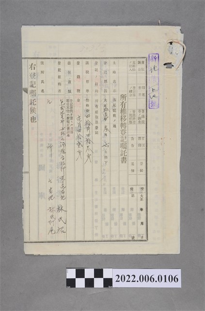 2022.006.0106 林氏招等2人大正12年所有權移轉登記囑託書