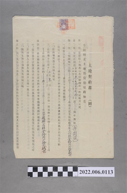 2022.006.0113 陳大某昭和4年蘆竹庄業佃會土地契約書