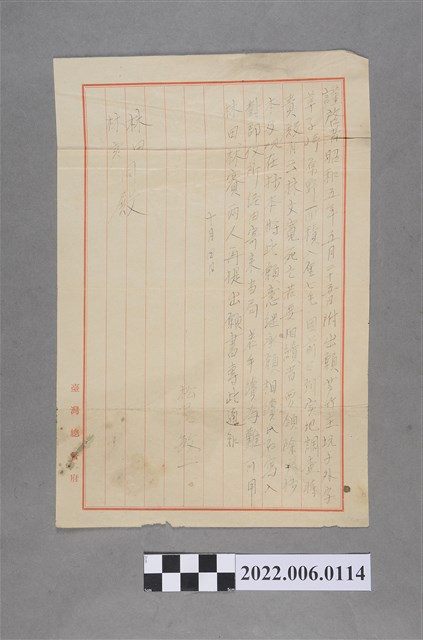 2022.006.0114 臺灣總督府殖產局山林課雇員松尾敏一手書信件