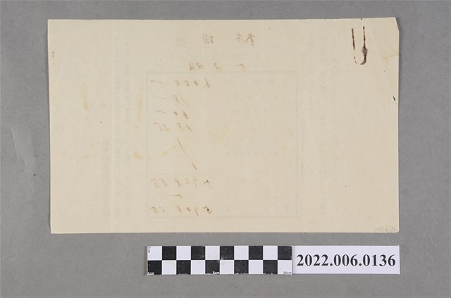 本物件為「日本勸業銀行臺北支店」的「御融通金送金案內書」,內容記載昭和5年(1930)3月22日,通知林田,速帶印鑑等資料,前來領取5908.85圓御融通金事宜。