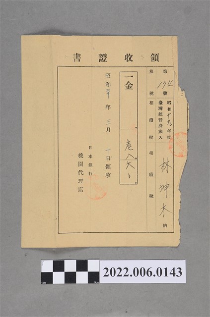 2022.006.0143 林坤木昭和20年收相續稅金繳納領收證書