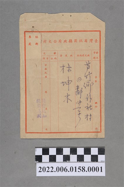 2022.006.0158.0001 林坤木臺灣省桃園縣政府公文封