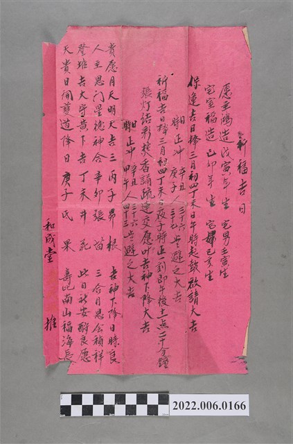 2022.006.0166 「和成堂」戴成琳推算祈福吉日紅單