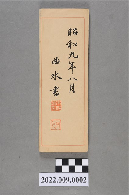 日治時期雖有書法教學、但並無總督府定本書法教科書,其課堂所使用之教科書多為教師範書、教材供學生臨摹練習、亦可透過文部省審查通過之習字帖、歷代碑帖教授。其文部省審查通過之習字帖也有小、中學校教科書之撰寫者,《新編女子書鑒》為捐贈者祖父於臺中師範學校就讀時所使用之習字帖,本字帖通過文部省檢定、由曲水木俣波男編著、國華會發行,昭和九年十二月四日高等女學校國語教科用書。
