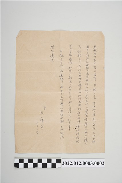 2022.012.0003.0002 賴一祥予劉先生之書信之二