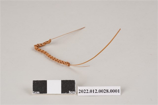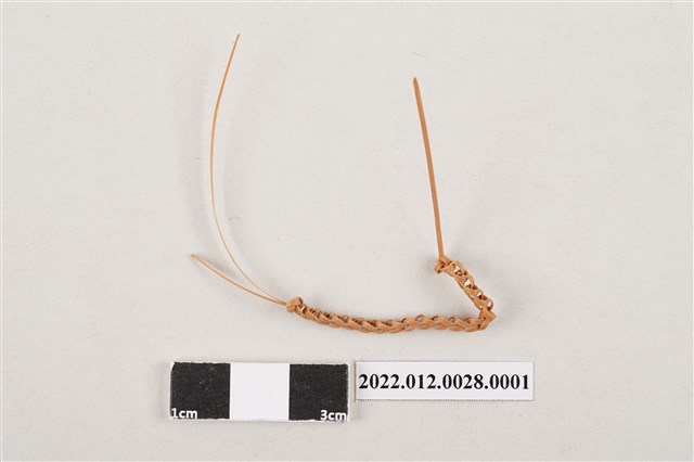 1. 本物件為劉靜枝編製繩狀竹編半成品,共有6枚半成品組成,4枚為條狀、2枚為球狀,主體皆為以2至3條細竹篾編織而成的立體繩條,作品尚未完成。 2. 劉靜枝為民國31年次出生,關廟人,其竹編技藝傳承自其母親劉楊玉時,劉靜枝曾獲臺灣工藝研究中心邀請參加「中日工藝展」,她最為知名為竹編的小竹籃,由小到大的竹編籃,最小約0.7公分,精湛的技藝深獲好評。