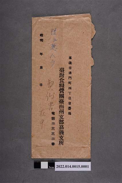 2022.014.0015.0001 臺灣食糧營臺南州支部嘉義支所信封