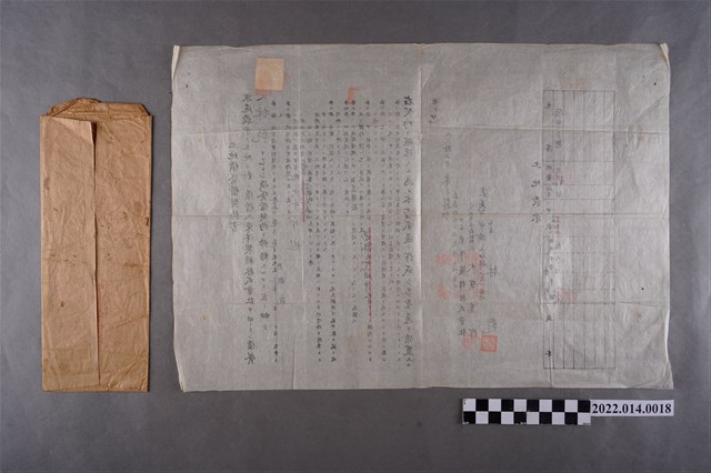 1.大正15年3月22日林乾與東洋製糖株式會社立土地賃貸借契約書,為東洋製糖株式會社承租林乾位於嘉義郡中埔庄頂中下街的1筆土地,期限自大正15年1月1日至無限期,附有土地清單。另附有信封1件。