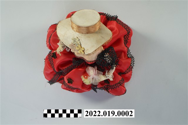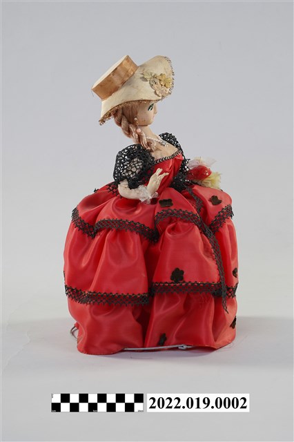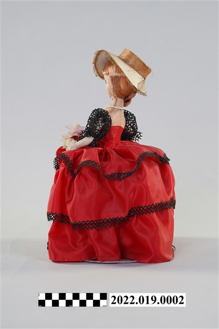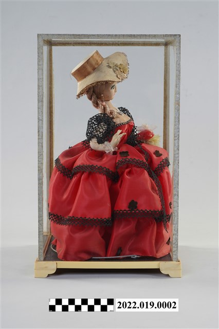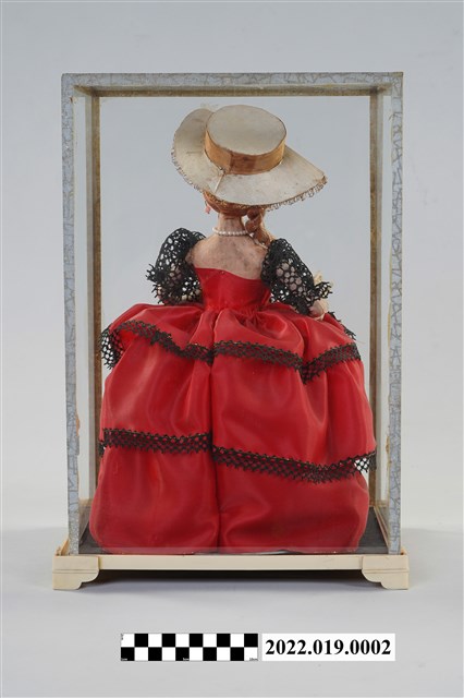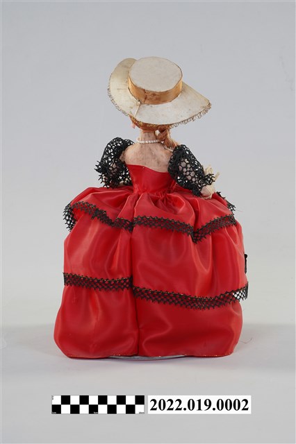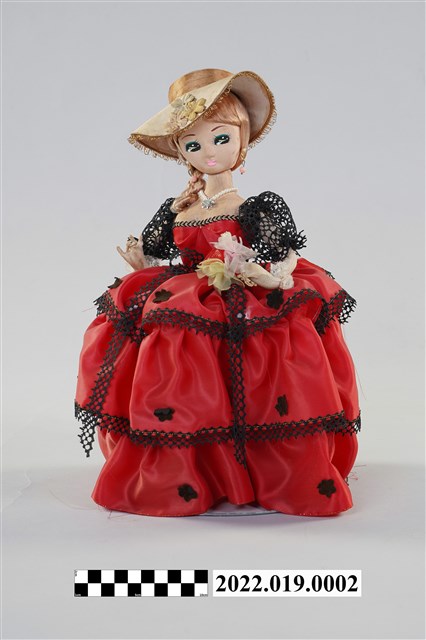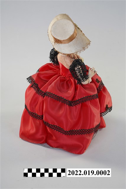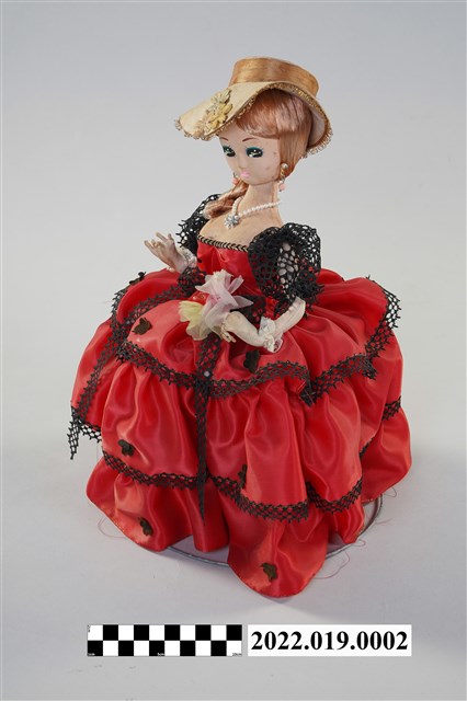 娃娃著紅色禮服,特色為細緻的印染眼睛、華麗的西式服飾與纖細的手指。其表面由布、紗、蕾絲等製成,身體的支架則由保麗龍與鐵絲所組成,下半部是空的,故整體重量偏輕,身體處或外框皆無明顯特徵、logo與吊牌等。