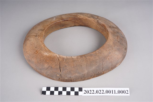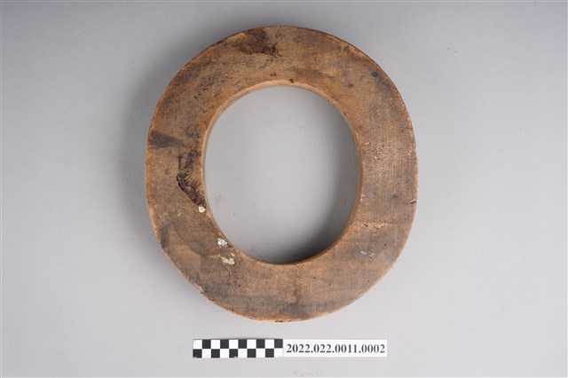 紳士草帽帽檐黑色橡膠模具,外形呈圓環狀。使用時搭配油壓機器,將手工編織好的草帽半成品(妹胚)放入模具中,加壓使草帽定形。