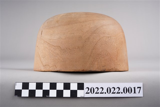 本件為編製草帽帽身的木模,外形呈圓柱狀,圓頂,圓角轉。編織者先編至帽子的頂部,以經緯各6-18條不等的原料,由帽頂中心編起,不斷加草編製成一個帽頂。編完頂部後,套於帽模上,繼續編製帽身至帽圍,借以控制帽身頭圍大小與形狀。