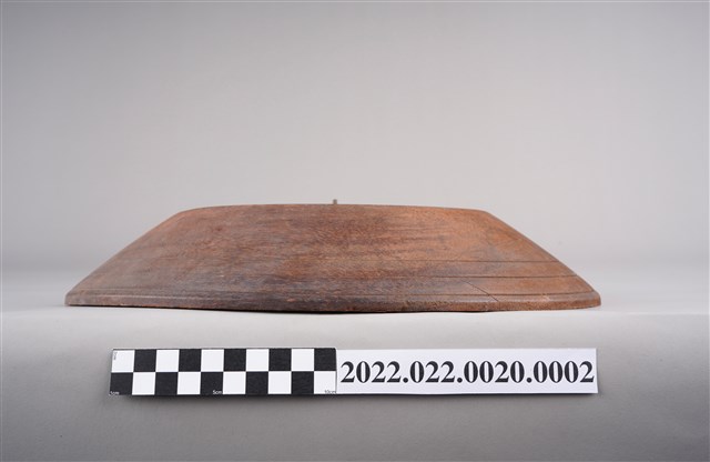 本件為淑女草帽之帽檐木模,外型呈圓環狀,外側略呈梯形。編織者在編製草帽時,使用帽撐(又稱「車輪」)支撐將帽體編成圓管狀。