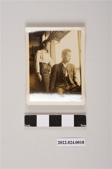 2022.024.0018 門口邊張子敬與友人側面黑白照片