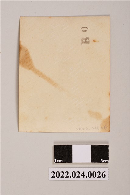 1.本物件為雕像下兩個男人背面黑白照片,照片正面為2名男子身著大衣面立於雕像前,照片背景為1座雕像,雕像為雙手叉腰之武士服男子,雕像底座為圓柱體;背面黏有殘膠且泛黃。2.張子敬出生於大正5年(1916),臺中神岡人,國小畢業後赴日本讀書,中學後進入東京市麴町區私立日本齒科醫學專門學校就讀,昭和17年(1942)畢業隔年返臺,於梧棲臺中港附近開業,因港口沒落遷居高雄,於三民區建國路441號開設「增全齒科診所」。昭和21年(1946)取得臺灣省牙醫臨時證書,民國37年(1948)通過國家考試取得中華民國醫師考試及格證書,民國40年(1951)取得牙醫證書後入伍擔任軍醫,民國44年(1955)取得國防部臨時地方醫事人員講習證,並退伍擔任國防部預備幹部,民國69年(1980)加入高雄市牙醫師公會會員,民國72年(1983)獲頒行政院衛生署牙醫工作40年成績優良獎狀。於民國79年(1990)過世。