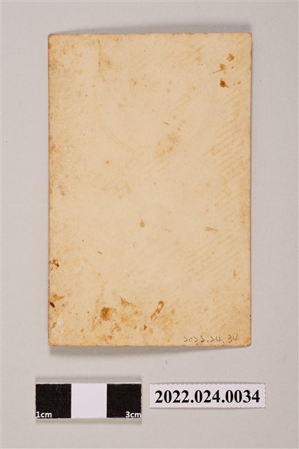 1.本物件為為人像和服7分身黑白照片,照片正面為頭包巾身著和服之微笑男子;背面黏有殘膠且泛黃。2.日治時期,臺灣本地攝影者有為日人經營寫真館的學徒學習攝影技術,亦有赴日的留學生,不僅於日本習得攝影技術,更受日本1920年代後的新興寫真與報導寫真影響。當時臺灣攝影人士的活動據點以臺北、臺中、臺南風氣盛行,亦組織同好會等,其拍攝主題除肖像、喜慶、紀念照外,多為田園景色與家族人像照片。除民間的寫真團體,寫真受到統治當局的限制:舉凡攝影者選擇的拍攝對象與範圍都受到官方的規範。