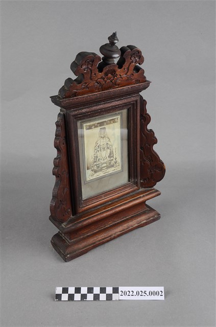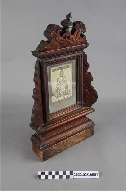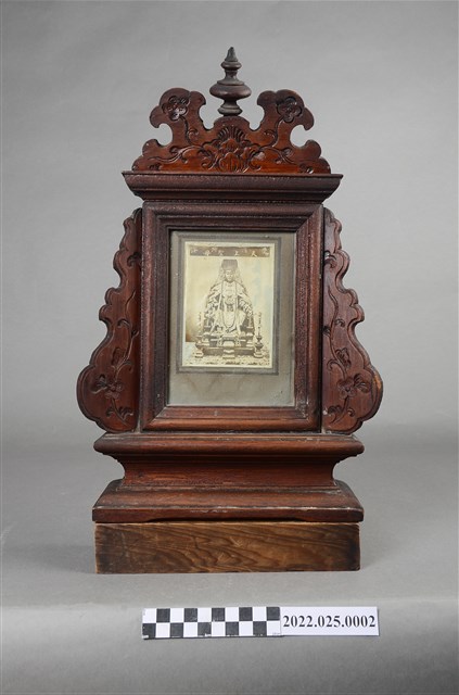 為1914年莊泉與施喜結婚時,為施家製作的神像,照片為鹿港媽祖。