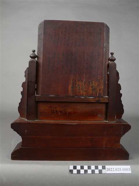 後註明1914年莊泉刻寫。該年莊泉以半入贅與施喜結婚,為施家重新製作神主牌。