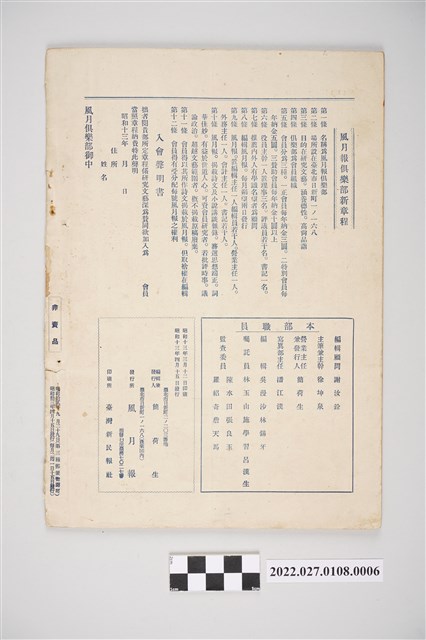 2.《風月報》第62期(4月號下卷)於昭和13年(西元1938年)4月15日發行。