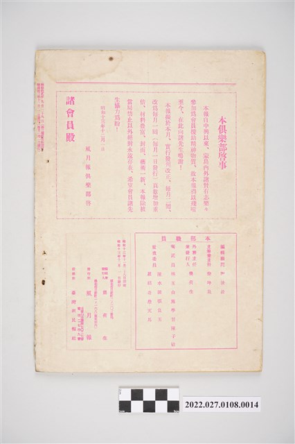 2.《風月報》第76期(12月號)於昭和13年(西元1938年)12月1日發行。
