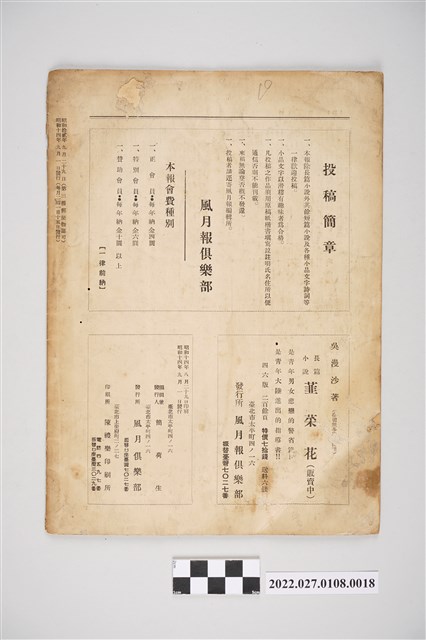 1.《風月報》為日治時期通俗文藝雜誌,刊登藝伎小傳、笑話、謎語、民俗歌謠、奇譚、章回小說、白話小說等內容,兼容新舊文體。其前身為1935年至1936年發行之《風月》,《風月報》1937年7月於臺北出版,期數自第45期起算,至1941年6月發行第132期後停刊。