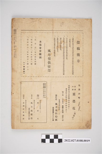2.《風月報》第96期(10月號下卷)於昭和14年(西元1939年)10月16日發行。