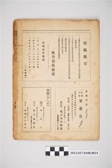 2.《風月報》第98期(11月號下卷)於昭和14年(西元1939年)11月21日發行。