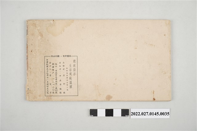 中央日報社出版《總統指示生活規範圖解—附「國民生活須知」全文》之一,封面蓋有台北市公共汽車管理處修理廠圓章。