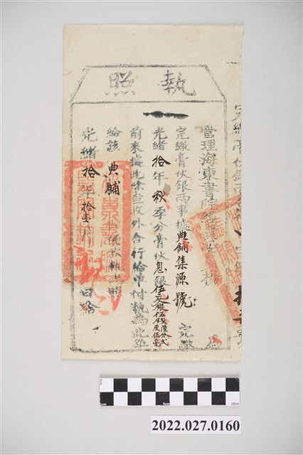 2022.027.0160 光緒10年11月典鋪集源號完繳執照